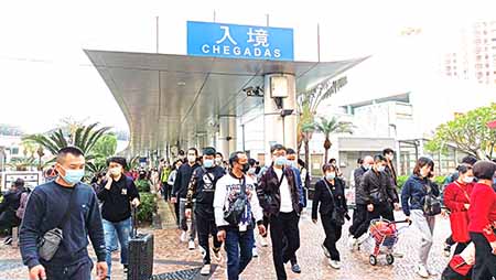 治安警公布,昨日至晚上九時,經各口岸入境旅客總數逾28.7萬人次,其中入境旅客約有2.3萬人次,旅客出入境總數5.2 萬多人次。
