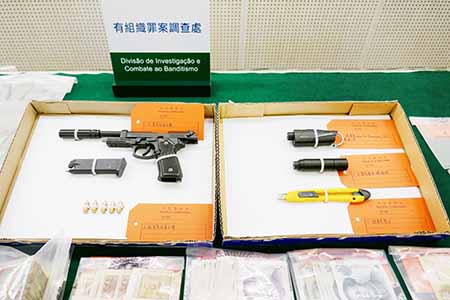 【特訊】一名內地無業男子涉嫌持仿真手槍及仿真子彈來澳作案,疑犯日前在西灣湖附近懷疑對一輛客貨車進行爆竊,治安警接報後將其截獲,除起出仿真槍外,還檢獲偽造證件及破窗器等,治安警將疑犯移交司警將之拘捕,但疑犯拒絕與司警合作,司警正追查仿真槍來源及疑犯有否涉及其他案件。