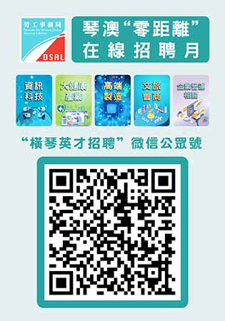 【特訊】勞工事務局與橫琴粵澳深度合作區的民生事務局、經濟發展局合辦”琴澳零距離”在線招聘月活動,提供400個工作崗位。活動已於2021年12月23日啟動,為期1個月。