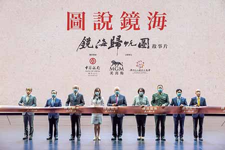 《圖說鏡海—鏡海歸帆圖》故事片首映禮昨日假美高梅劇院舉行,主禮嘉賓包括全國委員會副主席何厚鏵;行政長官代表、社會文化司司長歐陽瑜;中聯辦副主任嚴植嬋;外交部駐澳特派員公署特派員劉顯法;中國人民解放軍駐澳門部隊政治工作部主任竇國杰;立法會主席高開賢;中國銀行澳門分行副行長葉兆佳;美高梅總裁、首席戰略及財務官馮小峰以及《圖說鏡海—鏡海歸帆圖》故事片總策劃陸曦。