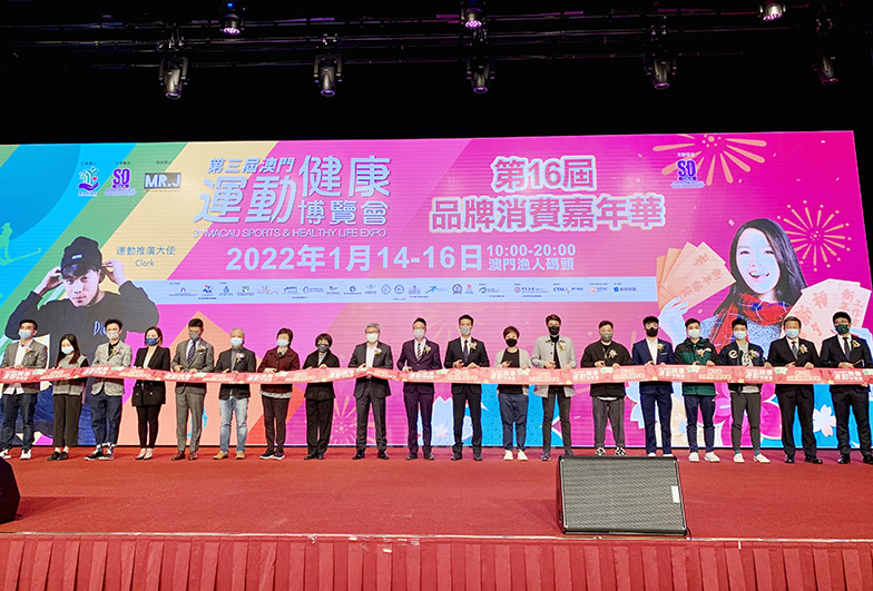 體育局局長潘永權、消委會全體委員會主席何佩芬、貿促局對外推廣籌劃處經理馮建樹、顯意會議展覽顧問有限公司董事總經理勞錦輝、澳門復康會理事長招漫玲、副理事長鄭卓明等出席主持「第十六屆品牌消費嘉年華」及「第三屆澳門運動健康博覽會」開幕儀式。