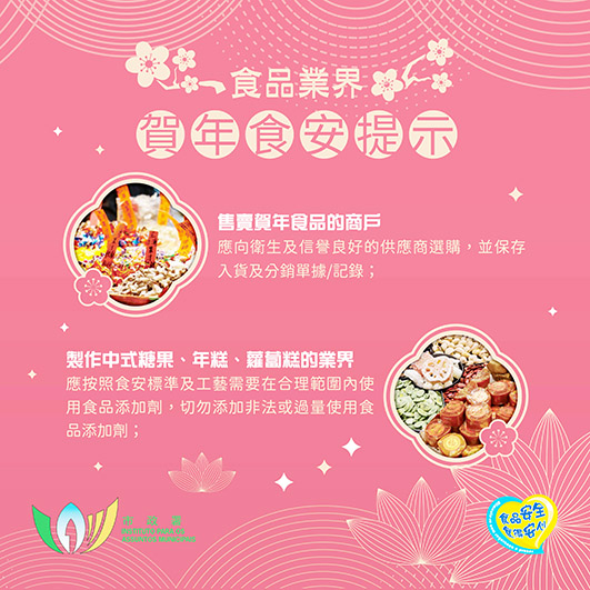 市政署亦已於食品安全資訊網 www.foodsafety.gov.mo 及食安資訊手機應用程式開設「賀年食安資訊」專頁,歡迎業界及市民查閱相關食安操作指引及資訊。