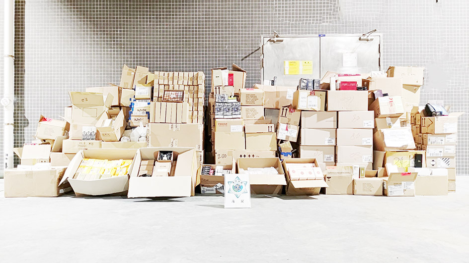 為有效遏止水客活動,守護好本澳的防疫前線,海關派員連日監察懷疑與水客活動有關的店舖,經滙總及分析相關情報後,鎖定一個位於北區工廈的散貨點,於10日下午採取行動,在現場緝獲大批美妝產品共8,000件,估值約415萬澳門元。經調查後,有強烈跡象顯示該場所負責人涉嫌非法聘用人員,將上述貨物以「螞蟻搬家」形式分批運送出境,規避粵澳兩地海關的監管。為減低新冠病毒的傳播風險,海關執行防疫指引,已對涉案貨物進行全面消毒程序。