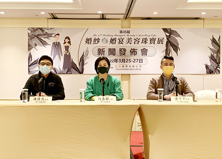 「第四十五屆婚紗婚宴美容珠寶展」新聞發佈會昨日舉行,主辦單位藝嘉國際有限公司代表出席介紹展覽詳情。