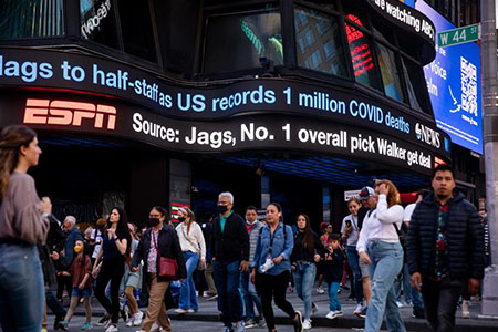 美國全國廣播公司新聞台和“世界即時統計資料網站”的統計顯示,美國累計新冠死亡病例數已超過100萬例。