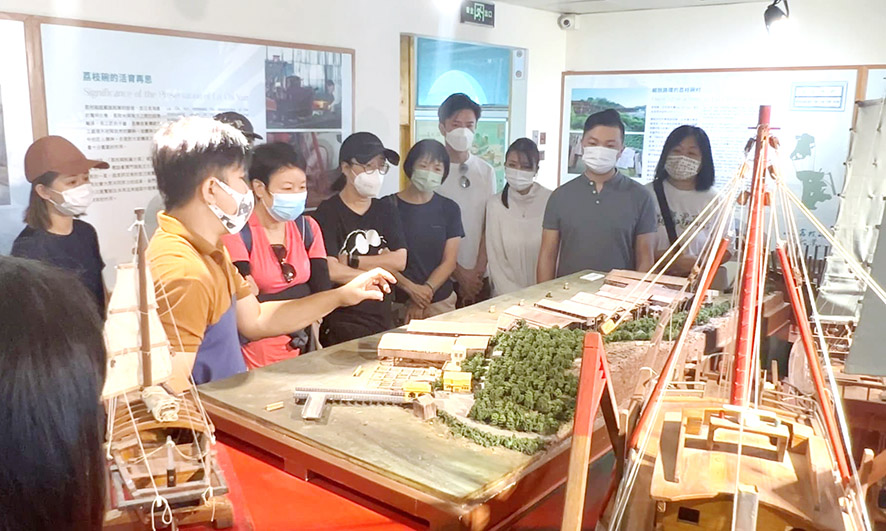 該會一行人在澳門造船業領域研究者談駿業先生帶領下,參觀澳門路環荔枝碗造船業展示館,談駿業向參加者講解澳門造船業的歷史,澳門造船業曾經是澳門四大傳統工業之一,隨著社會的變遷及澳門捕漁業的衰落,澳門造船業由興盛走向式微。展示館內展示造船工匠過往親自製作的造船工具,不同年代和款式的漁船模型、路環荔枝碗船廠片區模型及珍貴的造船記錄等,讓參加者可以透過不同角度探索當中澳門造船文化的面貌。同時亦引發參加者對荔枝碗造船與活化過程中的思考。