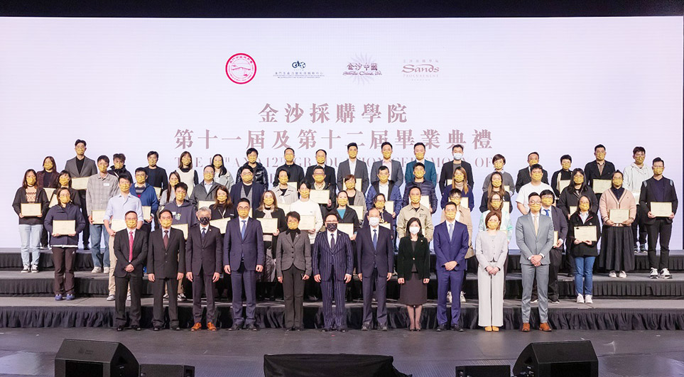 在金沙採購學院第十一屆及第十二屆畢業典禮上,集團向79家成功畢業的本地中小微企供應商頒授畢業證書。自2017年課程開辦以來,至今共有451家本地中小微企供應商參與,其中417家成功畢業。