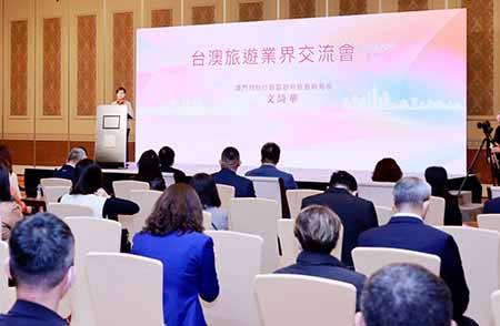 旅遊局局長文綺華於昨(22)日受邀出席“台澳旅遊業界交流會”,經歷三年疫情後,歡迎台灣地區業界來澳交流考察,期望台澳雙方通過交流會,重新開拓客源市場,促進兩地旅遊經濟復甦。旅遊局亦安排代表會上向參與人士介紹最新澳門旅遊資訊。