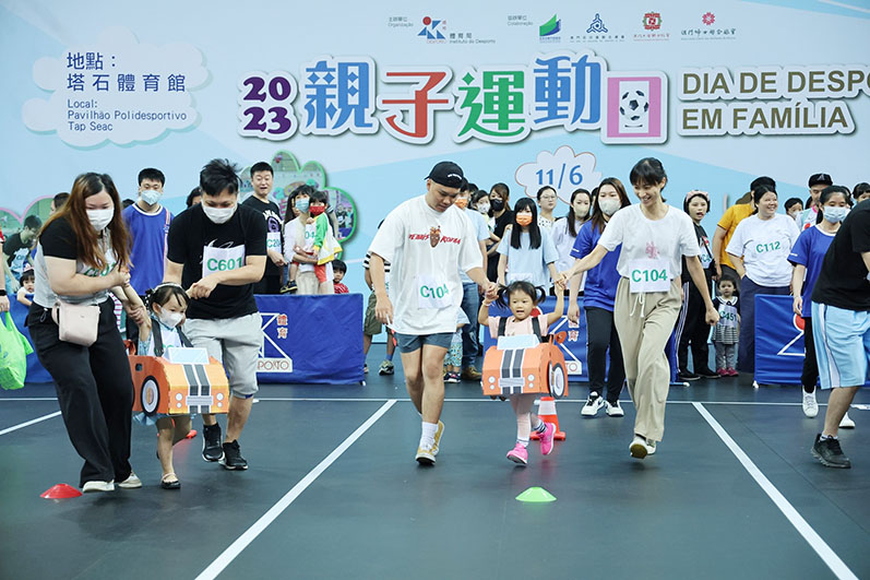 由體育局主辦,教育及青年發展局、澳門街坊會聯合總會、澳門工會聯合總會及澳門婦女聯合總會協辦的「2023親子運動日」於昨日在塔石體育館圓滿舉行。活動上,家長與子女互相合作,透過分組進行了多項的康體競技活動,場面溫馨熱鬧。