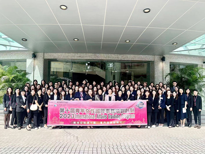 【特訊】由婦聯青年協會主辦、澳門基金會贊助的「二○二三青年女性國際事務培訓計劃」,日前前往外交部駐澳特派員公署進行專題學習講座。外交公署特派員夫人李萍、政策研究室主任馬乃芳參贊,婦聯青協理事長歐陽月勝,國培籌委會主席鄧卓霖以及八十位學員出席活動。