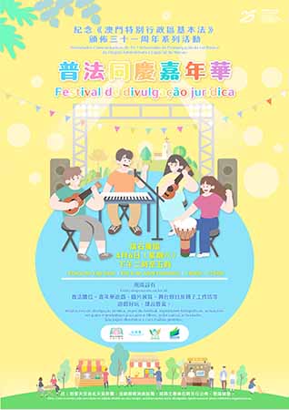 【特訊】為紀念《中華人民共和國澳門特別行政區基本法》頒佈三十一周年和慶祝澳門回歸祖國二十五周年,澳門基本法推廣協會、法務局、市政署和教育及青年發展局將於本周六(6日)下午二時至五時假塔石廣場合辦普法同慶嘉年華,活動內容豐富,讓市民在歡慶的氣氛下認識《澳門基本法》。