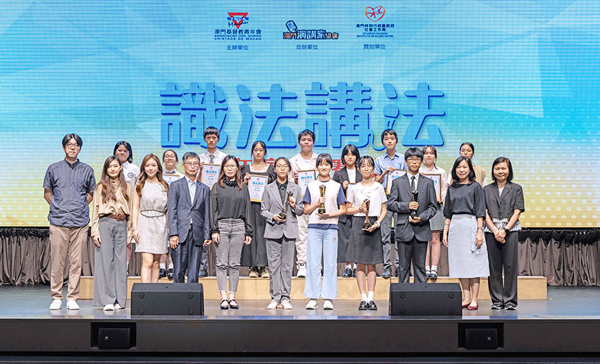 【特訊】由澳門基督教青年會主辦、澳門演講家協會合辦及社會工作局贊助的“識法講法” 青少年演說大賽,已於 7 月 21 日下午假聖保祿學校禮堂完成決賽。決賽當天對公 眾進行開放,參賽者須以脫稿形式進行主題為「預防青少年違法行為」的演講。 邀請了澳門基督教青年會監事長 馮愛琳女士、澳門演講家協會理事長 張曼鈺小姐、 中華教育會常務理事 李明基先生、青年事務委員會委員 唐可嵐女士、澳門電影導 演 孔慶輝先生擔任評審,以及社會重返廳職務主管 黃小英女士為頒獎嘉賓。期間 主辦單位邀請了兩名澳門傑出少年 章玥翎 及 林泳妍 分享他們成長中的奮鬥故事, 以及 MACAO A CAPPELLA 作為表演嘉賓。