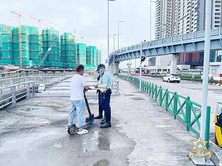 治安警察局一直致力維護駕駛者及行人出行安全,於二零二四年十月至十二月,治安警在澳門各區打擊機動或非機動滑板車在公共道路上通行之違例行為,共檢控三十七宗違例個案。根據《道路交通法》第十二條第四款規定,禁止機動或非機動滑板車在公共道路上通行,但屬主管實體明示許可通行的地點除外,違反上述規定者,可被科處罰款澳門幣六百元。