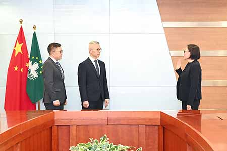 【特訊】博彩監察協調局局長吳惠嫻昨(7)日宣誓就職,就職儀式由經濟財政司司長戴建業主持,並由經濟財政司司長辦公室主任羅志輝見證。