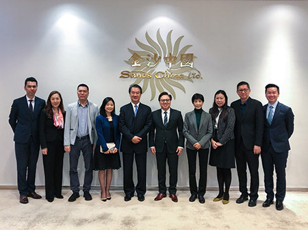 【特訊】澳門工會聯合總會會長陳錦鳴一行日前拜訪金沙中國,雙方就首屆澳門綜合旅遊休閒企業職業技能競賽、僱員福利等議題進行交流。