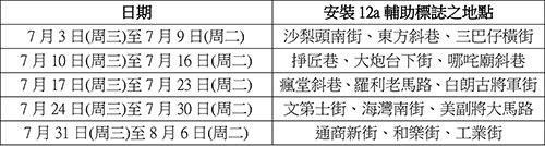 【特訊】交通事務局及治安警察局持續檢視本澳各區電單車泊車區的泊車情況,7月份將按序在多個地點增設式樣12a的輔助標誌(詳見下表),以引導電單車駕駛者應遵守的泊車方式,理順泊車秩序;同時,翻新相關路面泊車標線,清晰有關指示。