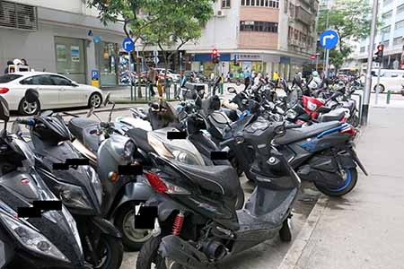 根據《道路交通法》相關規定,電單車駕駛者在停泊車輛時,須以垂直並列的方式停泊電單車,否則可被罰款澳門幣300元。