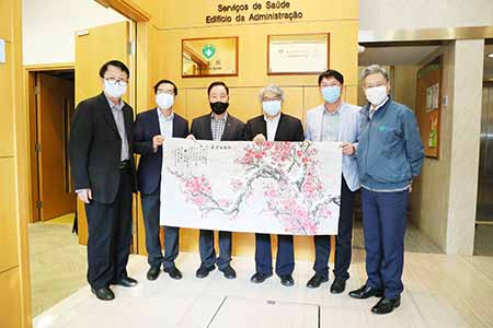 【特訊】多個團體及人士,包括澳門書法家協會永遠榮譽主席尤端陽、歐陽澤榮主席及吳金楓秘書,澳門書法院榮譽會長吳在權、區耀南院長及馬騰秘書長,濠江中學蘭亭書法協會陳步倩會長,以及溫泉先生,在日前分別向衛生局致送多幅書畫作品及自製工藝品,以表揚衛生局醫護人員於抗疫期間所作出的貢獻,並由衛生局李展潤局長、仁伯爵綜合醫院郭昌宇院長、衛生局鄭成業副局長接收。