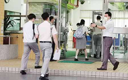 初中教育階段今日(周一)復課,有學校在入口設置洗手槽讓學生清潔雙手,亦利用閒置課室,减低學生的密集程度,也會取消高三以下年級的大考,並以其它方式評核,希望全校師生共同努力,達到全校升班目標,培正學校校長高錦輝表示,校方都有一些所謂「模底」的測試,讓學生做一些問題及進行一些測試,讓老師知道學生們在疫情期間在家中學習了多少,從中了解學生們的學習水平,再進行教學,校方從小一至高二,在這學年都不會進行大考,都會是形成性的評核處理,學年亦會在七月三十日才結束。