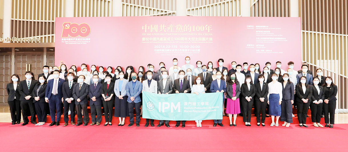 【特訊】為瞭解中國共產黨的百年奮鬥歷程、加強大學生及青年對國家的認同感及身為中國人的自豪感,澳門理工學院院長嚴肇基、學生會理事長伍家琪、校友會理事長黃宇棋,在澳門基金會行政委員區榮智陪同下,聯同師生校友一百人於6月29日到中國與葡語國家商務合作服務平台綜合體參觀 「中國共產黨的100年—慶祝中國共產黨成立100周年大型主題圖片展」。參加的師生表示圖片展以形象生動的方式全景展現在中國共產黨領導下中華民族強大起來的輝煌歷程,更好地瞭解中國的昨天、今天和明天,共享祖國繁榮富強的偉大榮光。