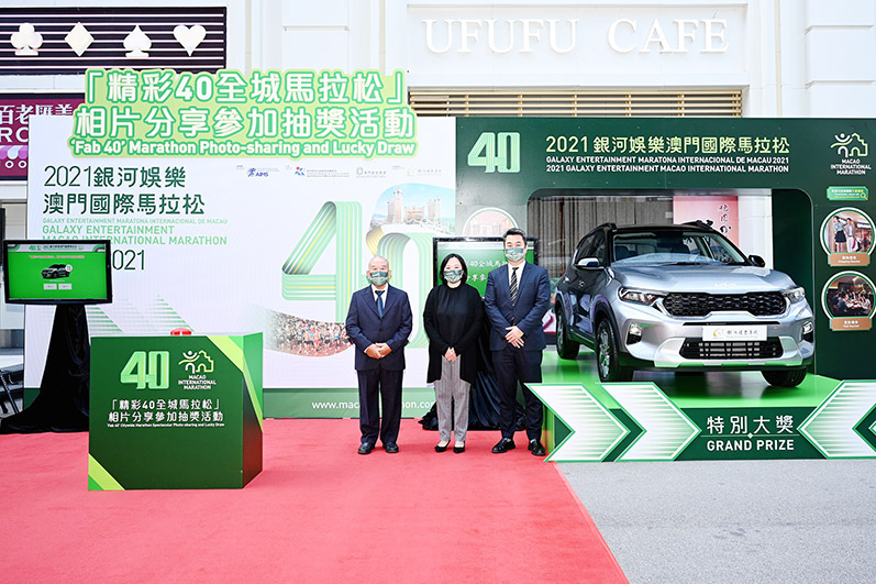 【特訊】由澳門特別行政區政府體育局及澳門田徑總會主辦,銀河娛樂集團(下稱「銀娛」)冠名贊助之「2021 銀河娛樂澳門國際馬拉松」於 12 月 5 日圓滿舉行。適逢賽事舉辦 40 周年,為豐富賽事元素,銀娛今年贊助舉辦「精彩 40 全城馬拉松」相片分享參加抽獎活動。抽獎儀式於日前在「澳門百老匯™」之「百老匯美食街」舉行。體育局澳門格蘭披治大賽車及大型體育活動廳廳長李詩靈、澳門田徑總會監察委員會主席吳煜棠以及銀娛公共關係高級副總裁林志成出席並抽出得獎幸運兒。
