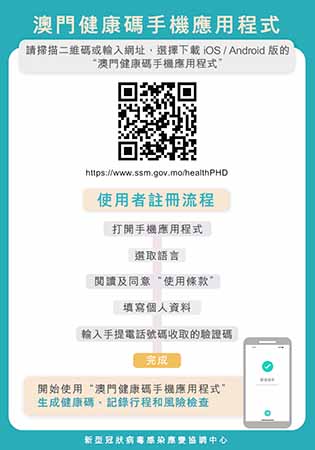 【特訊】新型冠狀病毒感染應變協調中心表示,截至昨日(16)日下午2時,「澳門健康碼」手機應用程式累計註冊人數逾479,000人,呼籲居民儘快下載,年輕人可藉著周日假期,協助家中長者下載並教導其使用。