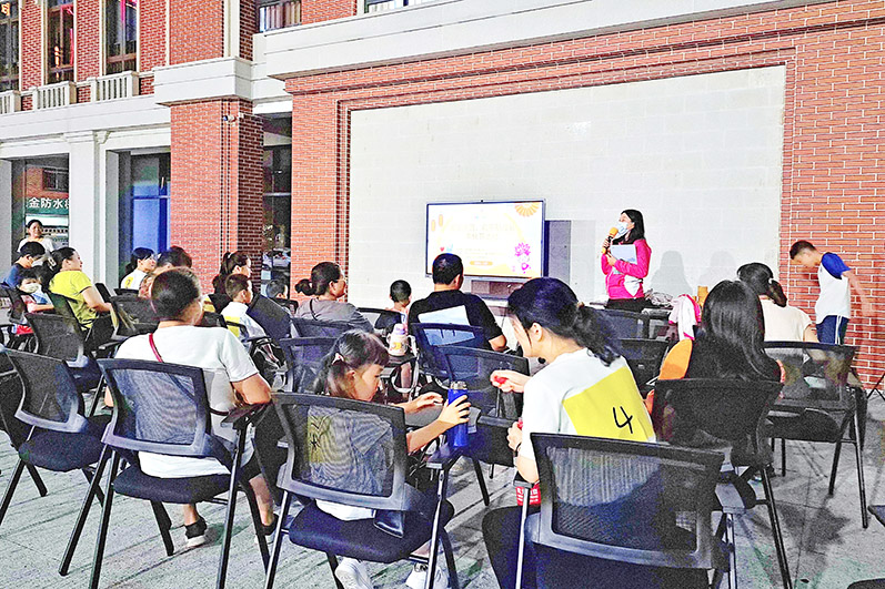 隨後,工作人員組織親子製作中秋花燈,小朋友在家長的協助下,一塊塊地拼接出各種造型的花燈,在涼爽的夜晚中,一個個精緻可愛的花燈逐漸製作完成並呈現眼前,現場燈光搖曳靈動,充滿愉快的節日氣氛。