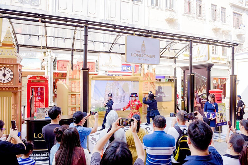 一連五天的「福建•廈門澳門周」大型路展現場吸引了眾多當地居民和旅客。其中,澳門金沙度假區的英倫風格展位成為打卡熱點。展位以旗下最新英倫主題綜合度假村——澳門倫敦人®為主題,設計融合了大笨鐘、紅色電話亭和紅色郵筒等英國經典元素,令訪客恍如置身倫敦街頭,體驗地道英式風情。LED大屏滾動播放度假區的紛呈體驗,讓訪客盡情探索食、住、購、玩等多種新鮮玩法。路展現場亦每天上演以現代風格重塑經典的「皇家衛兵換崗」表演,讓人近距離體驗獨特的英倫魅力。