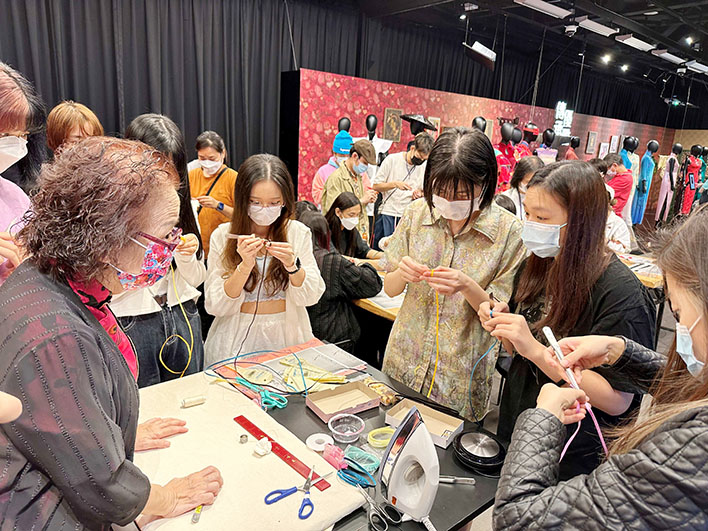 此外活動當日還有花鈕配飾工作坊可供大眾參與,時間為15:00到20:00,分8個場次,每半小時一場。工作坊將展示製作花鈕配飾的技巧,將緄條摺成不同形狀,並添加耳環托、頸鏈或戒指,打造個性化的花鈕配飾。工作坊現開放線上報名(報名連結:https://forms.gle/EciQBQrfoFT25NVMA),名額有限,費用全免。