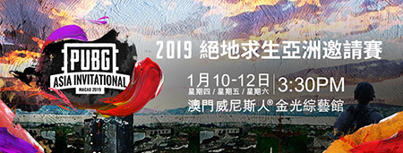 【特訊】由PUBG Corporation 舉辦,令人熱切期待的《2019絕地求生亞洲邀請賽》將於2019年1月10至12日期間在澳門威尼斯人®金光綜藝館舉行。