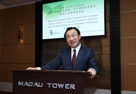【特訊】社會文化司司長譚俊榮出席在澳門旅遊塔會展娛樂中心舉行的非高等教育委員會、青年事務委員會及教學人員專業委員會聯席春茗,與教青局局長老柏生、副局長梁慧琪、副局長龔志明,社會文化司司長辦公室顧問郭曉明,以及三會委員等87名嘉賓,共慶己亥豬年新春。
