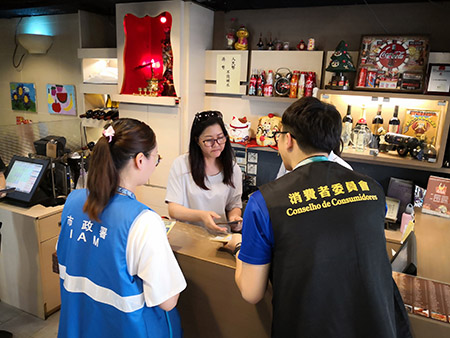 消委會在“五•一”前後展開多項維權工作,包括舉行跨部門會議交換假期期間各部門的維權措施,以及與海關及市政署在“五•一”假期前聯合到各區巡察,向商戶派發保護知識產權相關法例、正確標示商品與服務價格等單張,向商戶宣傳守法誠信營商的必要性,加強溝通,並應商戶查詢提供改善建議,以保證與維護本澳旅遊購物城市的良好形象。期間,消委會要求“誠信店”商戶還須恪守“誠信店”守則,為消費者提供更優質的服務。