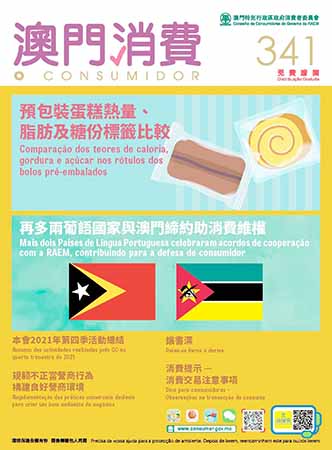 【特訊】新出版的第341期《澳門消費》介紹近年澳門與葡語國家消費者組織的合作進展。消委會調查與比較預包裝蛋糕標籤的營養資料,調查顯示這類食品熱量、脂肪或糖份含量偏高,建議消費者不宜經常或過量進食。