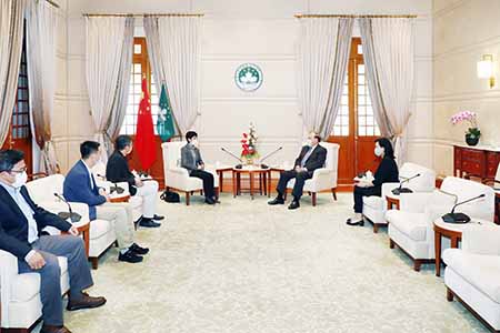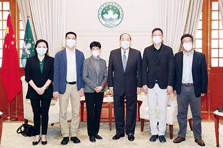 參加會面的還包括行政長官辦公室主任許麗芳;澳門工會聯合總會理事長李從正、副理事長蔡錦富、副理事長兼秘書長江鋭輝。