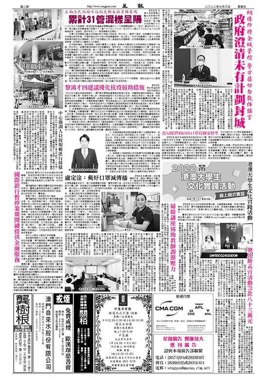【特訊】對於特區政府為紓民困推出《2022年百億抗疫援助措施》,澳門青年專業協會理事長黎鴻才認為,有關措施適時加碼推出,無疑是給予社會大眾一枝最有力強心針,對援助措施表示充份肯定及支持。他指出早前五一黃金週,旅客量有所上升,市面情況轉趨熱鬧,經濟有回暖跡象,中小微企盼望可以在暑假期間繼續有所好轉,但面對現時疫情嚴峻下,多類娛樂場所關閉、禁堂食服務以及入境防疫措施調整,令旅客對澳門卻步,經濟寒冬席捲中小微企。同時希望政府可以考慮將百億經援措施的受惠準則放寬並納入更多受惠群體,就有關措施中《僱員、自由職業者及商號經營者援助款項計劃》部分,提出四項建議。