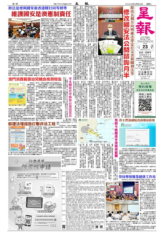 修法是要與國家和香港履行同等標準 維護國安是澳憲制責任