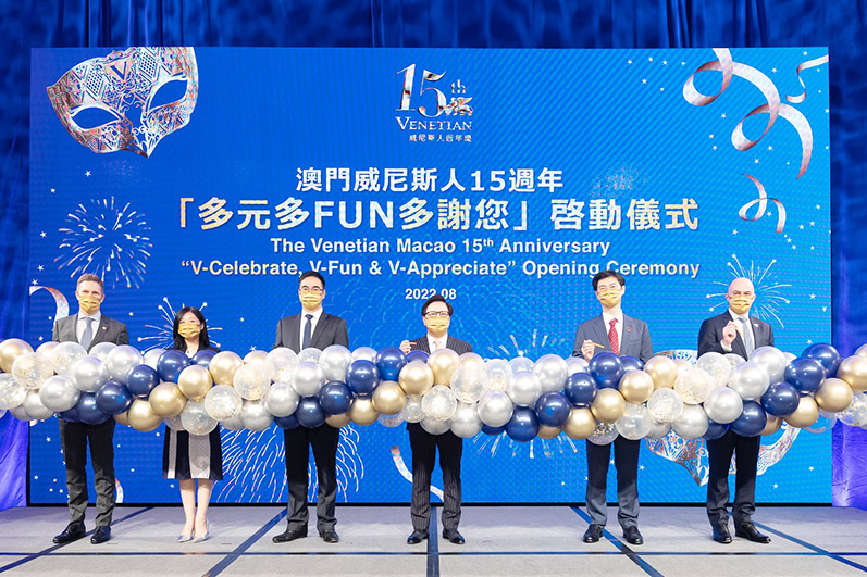 金沙中國有限公司總裁王英偉博士表示:「澳門威尼斯人是本澳首間大型綜合度假村,也是訪澳旅客必到的旅遊熱點。它所引入的全新業務模式徹底改變了路氹的發展格局,也在澳門發展成為世界旅遊休閒中心的過程中發揮重要作用。公司取得輝煌成就,有賴一眾出色的團隊成員一直以來與公司在發展道路上同心同行,因此我們十分高興能透過不同活動與大家分享周年誌慶的喜悅,並向他們表達由衷的謝意。藉著澳門威尼斯人踏入第十五個年頭的重要日子,我們亦非常感謝澳門特區政府及澳門社會各界多年來在本集團發展路上予以鼎力支持及指導。」