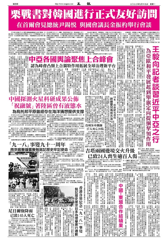 【中新社努爾蘇丹9月17日電】(記者 張碩)9月16日,上合組織撒馬爾罕峰會在取得一系列重要成果之後落幕。中亞各國輿論對此高度關注,認為峰會再次凸顯上合組織的獨特作用,拓展了全球治理新平台。