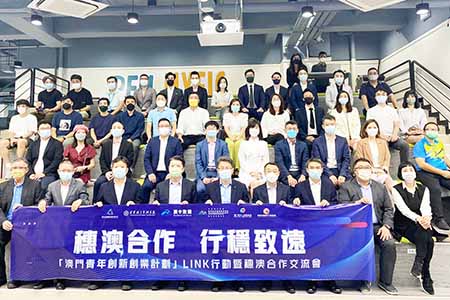 「穗澳合作‧行穩致遠」澳門青年創新創業計劃LINK行動暨穗澳合作交流會,昨日下午二時半假澳門青年創業孵化中心舉辦。來自穗澳兩地政府、行業巨頭、社團組織、投資機構等五十名嘉賓聚首對話,攜手推動穗澳兩地合作與交流發展。