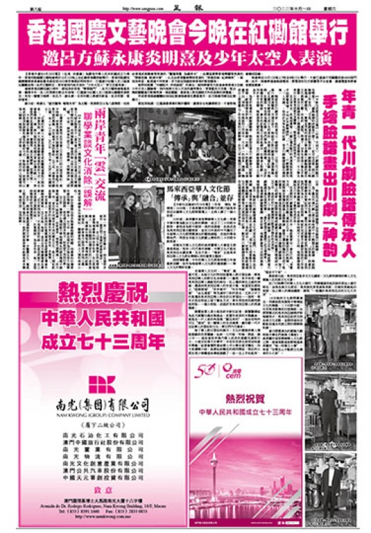 升旗儀式慶祝酒會文藝晚會煙花表演等 澳府多項活動慶祝國慶