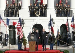 馬克龍是拜登政府首位以國事訪問規格接待的外國領導人。拜登在白宮南草坪舉行的歡迎儀式上說,美方希望藉此展現兩國雙邊關係的“持久友誼與活力”。這是馬克龍第二次來美國事訪問,上一次是在2018年4月的特朗普政府時期。
