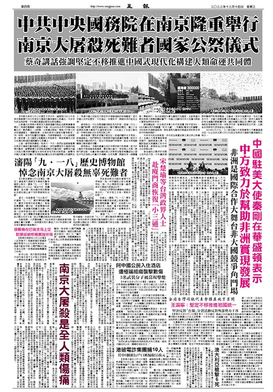 中共中央國務院在南京隆重舉行 南京大屠殺死難者國家公祭儀式 蔡奇講話強調堅定不移推進中國式現代化構建人類命運共同體