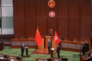 根據去年5月21日刊憲生效的《2021年公職(參選及任職)(雜項修訂)條例》,經修訂的《宣誓及聲明條例》(第11章)指明行政長官或其授權人士為立法會議員宣誓的監誓人。