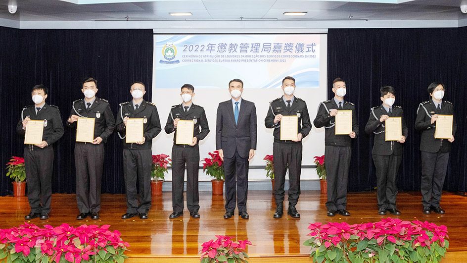 本年度共有86名表現優秀的員工獲得個人嘉奬,6個部門獲得團體嘉獎,同時有56名員工分別獲致送榮休及長期服務紀念章。儀式上,程况明局長表示,今年新冠疫情持續反覆,澳門經歷了不平凡的一年,懲教管理局在保安司司長的堅強領導、全體同事的共同努力,以及市民的理解和配合下,無論是應對疫情,還是面對其他挑戰,都能夠上下一心,積極實踐特區政府的施政理念,以及貫徹落實保安司司長提出的三個現代警務理念,全力做好防疫工作,持續加強獄政管理,協助在囚人及院生重返社會,強化隊伍建設,積極推進新監獄工程,構建更安全及穩妥的監管環境。