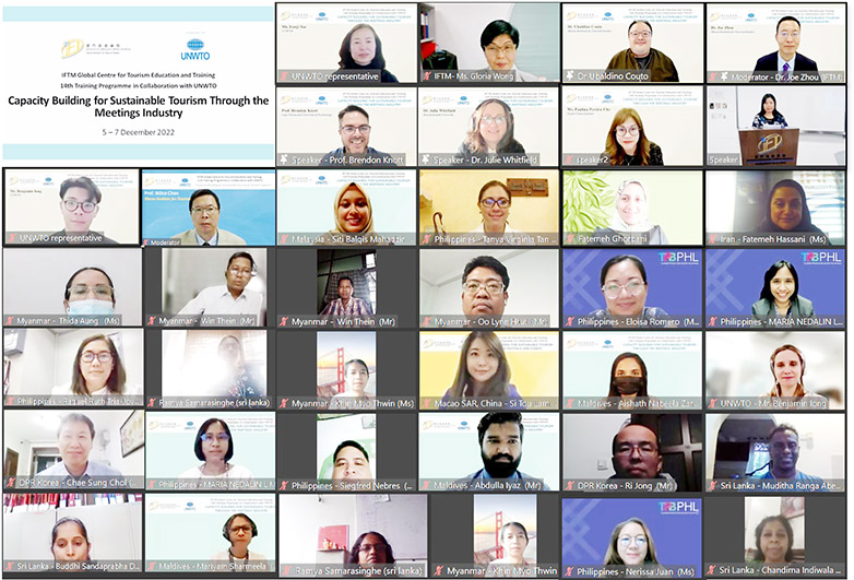 是次課程是2022年5月24 日至26日舉辦以「以節日盛事促進可持續旅遊發展的能力建設」為主題的第十三屆培訓課程的延續。這兩個以會議行業為主題的培訓課程均由澳門旅遊學院旅遊會展及節目管理課程主任高迪龍博士策劃。在他的閉幕詞中,他總結 “這兩次培訓課程有助於目的地考慮利用其先天資源發展活動產業。文旅會展是澳門四大支柱產業之一。課程特別鼓勵知識轉移並通過與世界旅遊組織的合作,是我們開展對話和思考如何做得更好的絕佳方式,同樣重要的是,我們可以從各個國家和地區的經濟舉措分享中獲益”。