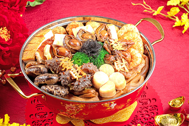 另有新春富貴盆菜(供四至六位)供應,選用原隻鮑魚、海參、花膠、鵝掌及瑤柱等上乘食材,富貴吉祥,價格為澳門幣1,688元*,可供堂食或外帶。預訂請致電+853 8118 8822電郵至goldencourt.reservation@sands.com.mo。