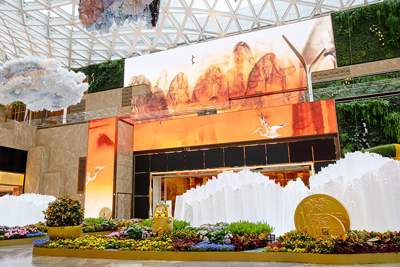 適逢新春佳節,美高梅與知名藝術家鄭重賓和沉浸式工作室 CFIRE攜手,呈獻全新的中式數碼藝術作品「WATERCOLOR STORY」。此多元的沉浸式動態數碼水墨作品於美獅美高梅的視博廣埸的 25 個大型 LED 屏幕上展現,以中國水墨斑斕的色彩,包括硃砂紅、三綠和群青渲染,打造三個主題場景,並分別加插中國和澳門文化中的傳統水墨畫符號,如仙鶴、魚兒和漁船等特色元素,越過澳門海港和大好河山,向賓客傳遞喜慶昌盛、長壽團圓的祝福。