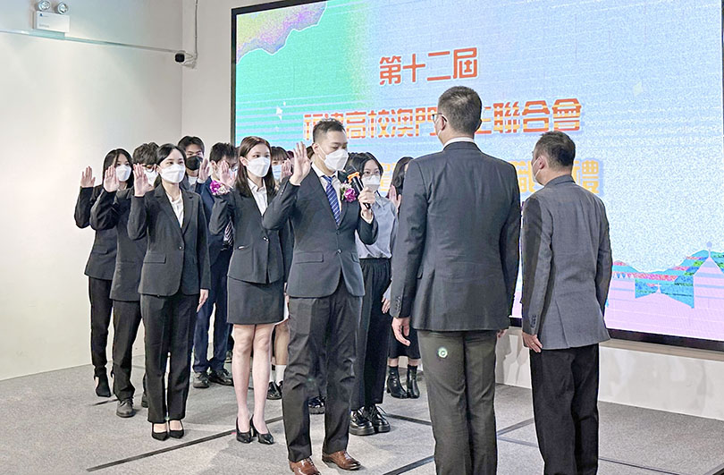 就職典禮下午三時半舉行,中聯辦教育與青年工作部三級調研員周權,教育及青年發展局學生廳陳旭偉廳長,新青協副理事長施冠雄,青聯副理事長傅騰龍,學聯代表高德榮,創會會長顏奕恆及多個學生社團代表出席。