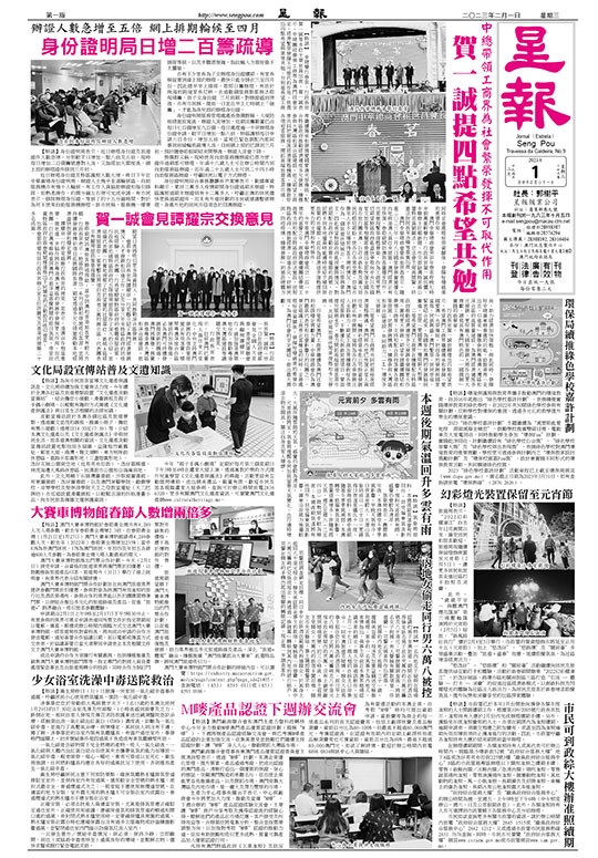 春節期間訪澳旅客勝過預期,當中訪澳的香港旅客更有較大升幅,行政長官表示,特區政府推出一系列活動和措施吸引客源,並將持續發展非博彩項目拓展國際客源,期望透過多元化措施推動本地經濟盡快恢復和穩定發展。