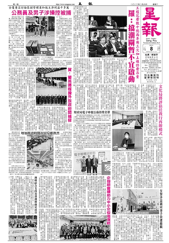 行政長官賀一誠昨日中午宴請本地葡英傳媒負責人。他在致辭時表示,澳門經歷了三年新冠疫情以來,最艱難的一段日子,從戰勝「6.18」嚴峻疫情威脅,到克服年底防控進入新階段帶來的衝擊,澳門廣大居民始終積極面對逆境,社會各界始終團結一致,以無私的奉獻、付出與犧牲,度過了期間的各種難關,終於迎來了防疫措施逐步放開、本地經濟漸見復甦、社會活動陸續復常。新的一年裡,很多身在海外的澳門同胞、以及關心澳門的朋友,亦終於等到了更開放和便利的出入境措施,並期待著像往日一樣,可以更自由地往來澳門,與海內外的家人、朋友和合作伙伴常見面。